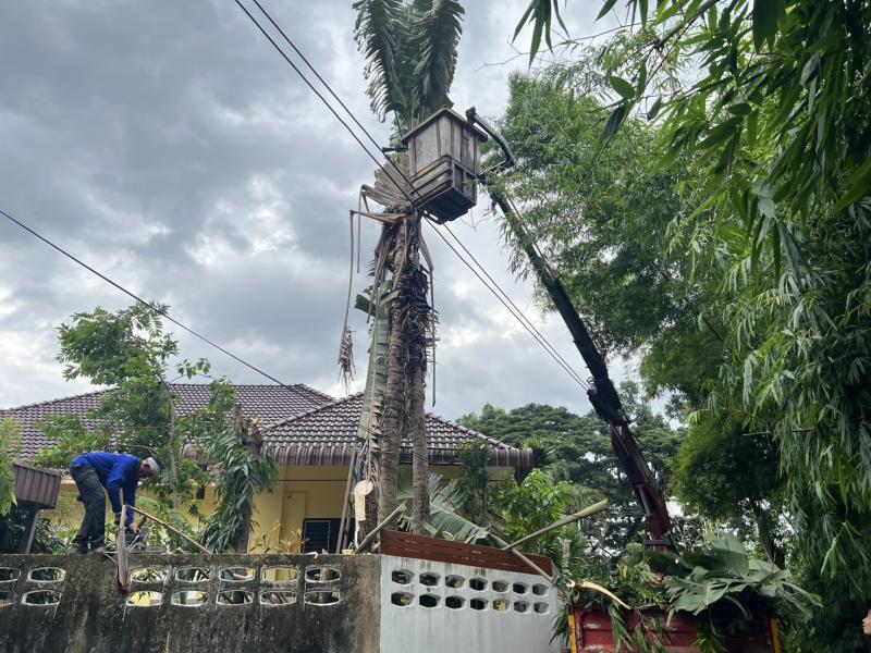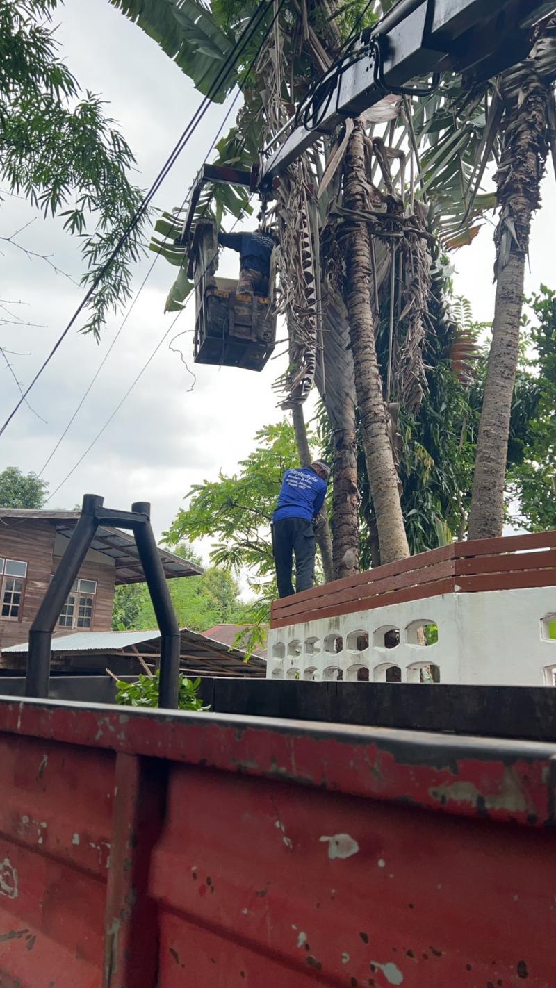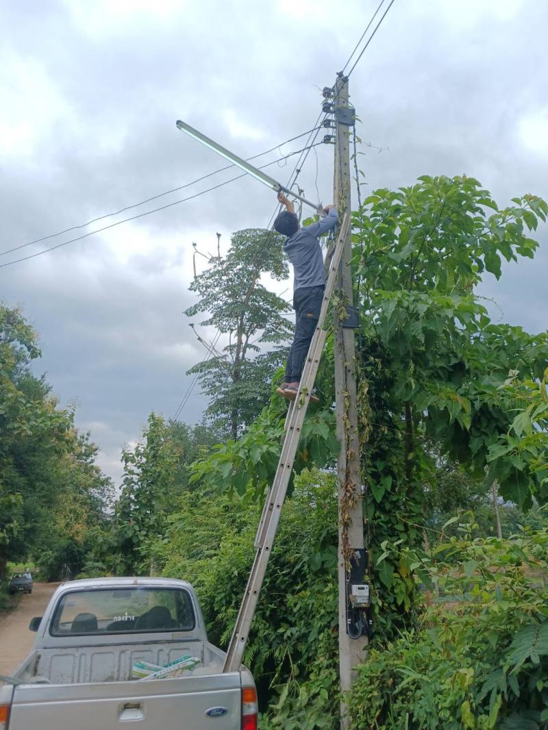 อบต.วังบาล ดำเนินการซ่อมไฟส่องสว่างถนน หมู่ 6-7 พร้อมตัดแต่งกิ่งไม้ใกล้สายไฟ หมู่ 10