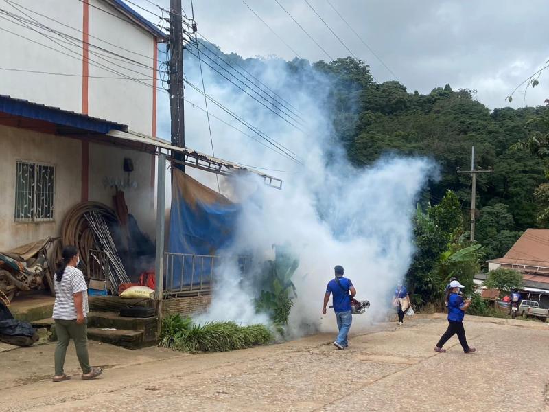รณรงค์การป้องกันโรคไข้เลือดออก และฉีดพ่นกำจัดยุงลาย ในพื้นที่ระบาดหมู่ที่ 14 และ 16