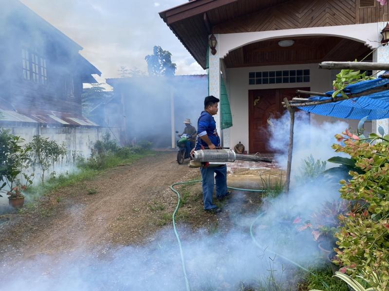 กองสาธารณสุขและสิ่งแวดล้อม อบต.วังบาล พ่นหมอกควันกำจัดยุงลาย หมู่ที่ 2 ครั้งที่ 4
