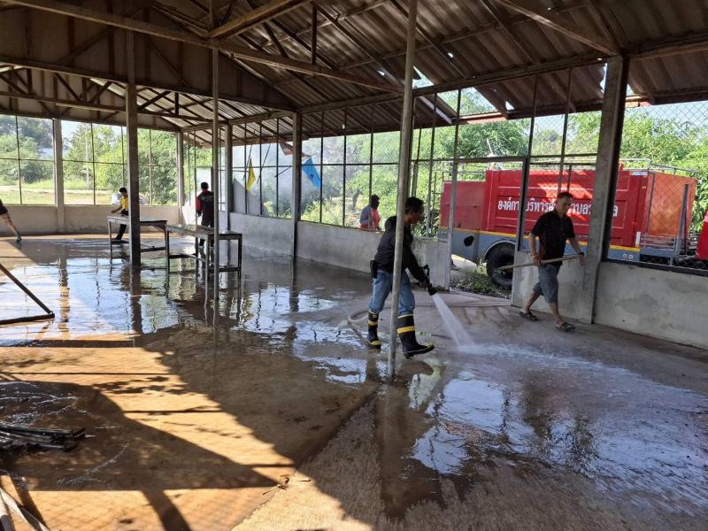 ออกให้บริการสาธารณะ เรื่องน้ำอุปโภค/บริโภค บรรทุกน้ำเพื่อสำรองน้ำให้ชาวบ้าน ในพื้นที่หมู่ที่ 9 และดำเนินการล้างทำความสะอาดศาลาประชาคมหมู่ที่ 6