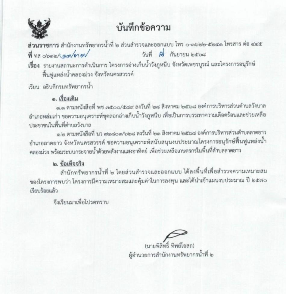 อบต.วังบาล ผลักดันโครงการฟื้นฟูอ่างเก็บน้ำวังภูหนีบ เข้าสู่แผนงานลำดับความสำคัญที่ 1 ของสำนักงานทรัพยากรน้ำที่ 2 สระบุรี [10 กันยายน 2568]