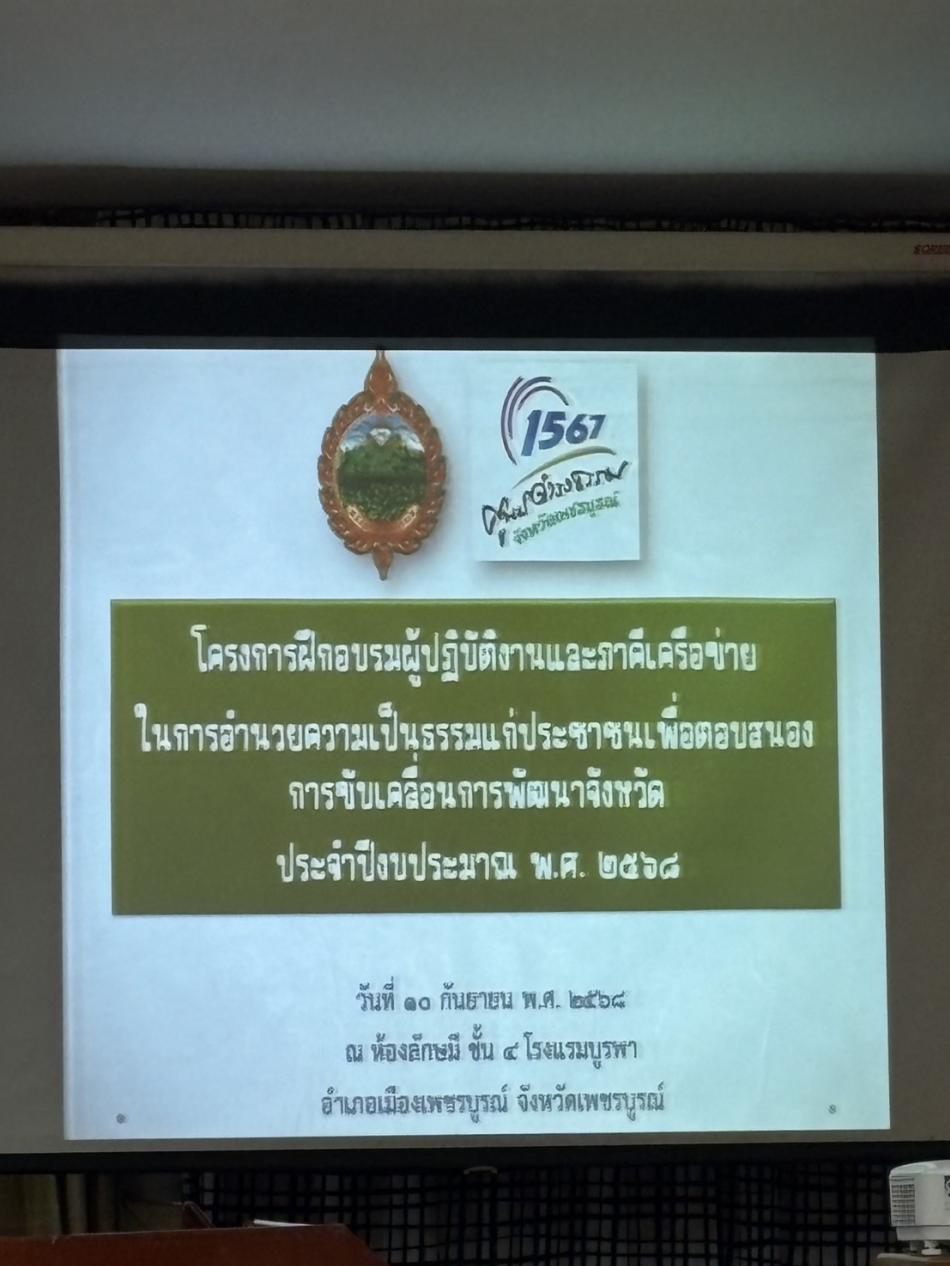 โครงการฝึกอบรมผู้ปฏิบัติงานและภาคีเครือข่ายในการอำนวยความเป็นธรรมแก่ประชาชน เพื่อตอบสนองการขับเคลื่อนการพัฒนาจังหวัด [10 กันยายน 2568]