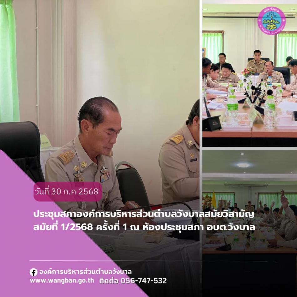 ประชุมสภาองค์การบริหารส่วนตำบลวังบาล สมัยวิสามัญ สมัยที่ 1/2568 ครั้งที่ 1 ณ ห้องประชุมสภา อบต.วังบาล [30 กรกฎาคม 2568]