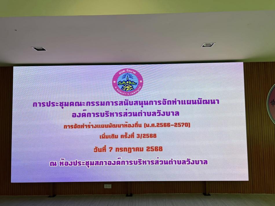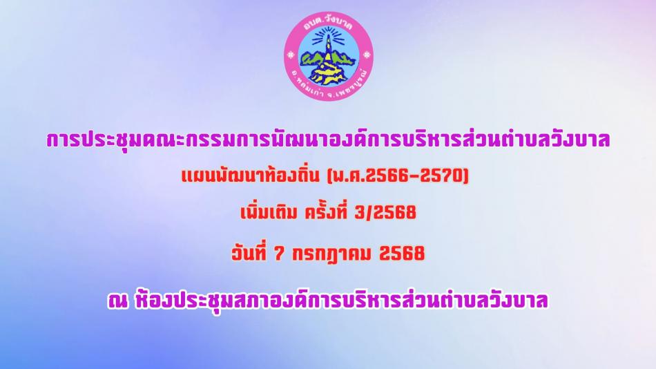 ประชุมคณะกรรมการพัฒนาองค์การบริหารส่วนตำบลวังบาล เรื่อง แผนพัฒนาท้องถิ่น (พ.ศ. 2566–2570) เพิ่มเติม ครั้งที่ 3/2568 [7 กรกฎาคม 2568]