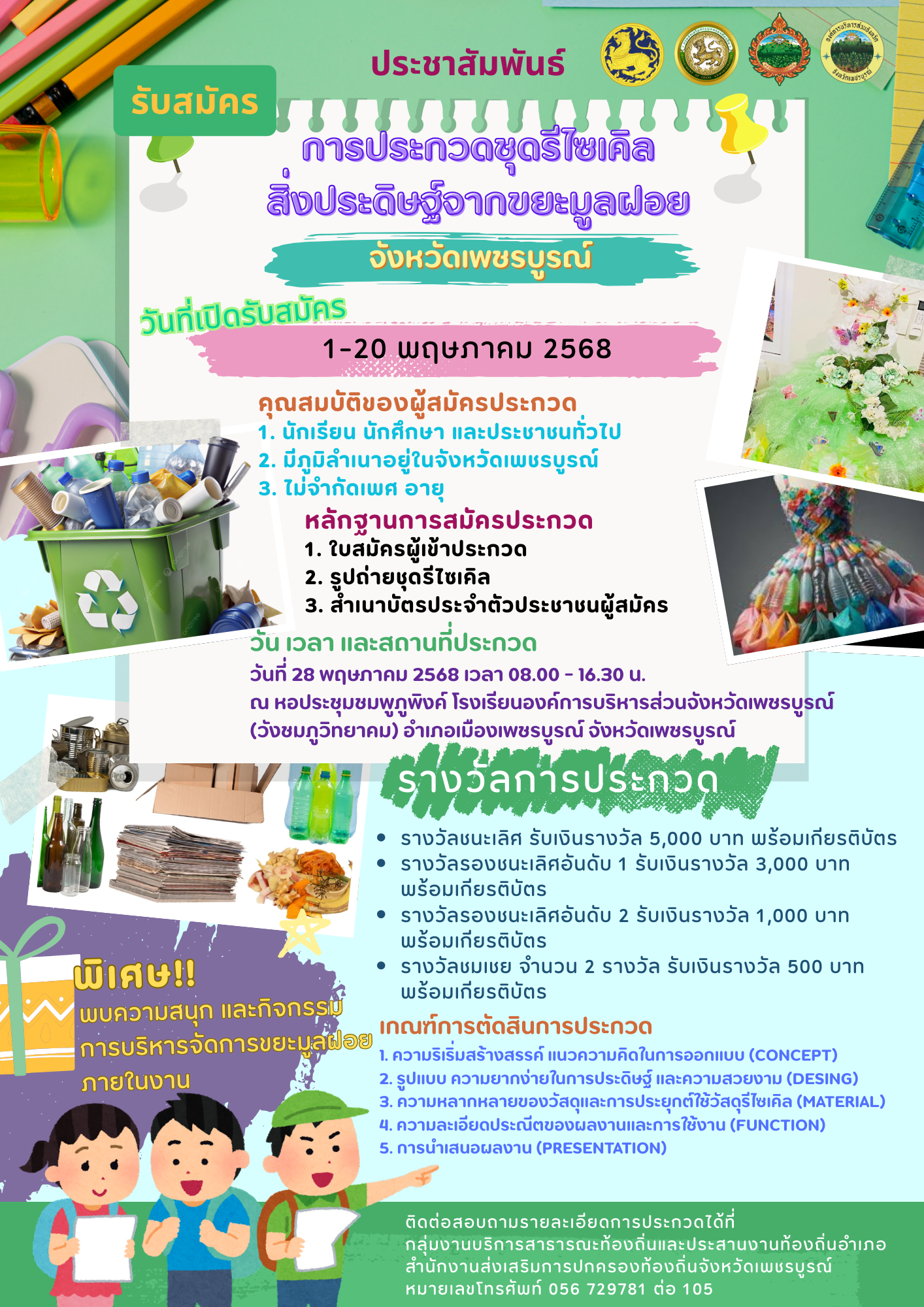 ชื่อเรื่อง : ประชาสัมพันธ์กิจกรรมการประกวดชุดรีไซเคิล สิ่งประดิษฐ์จากขยะมูลฝอย จังหวัดเพชรบูรณ์ ประจำปีงบประมาณ พ.ศ.2568