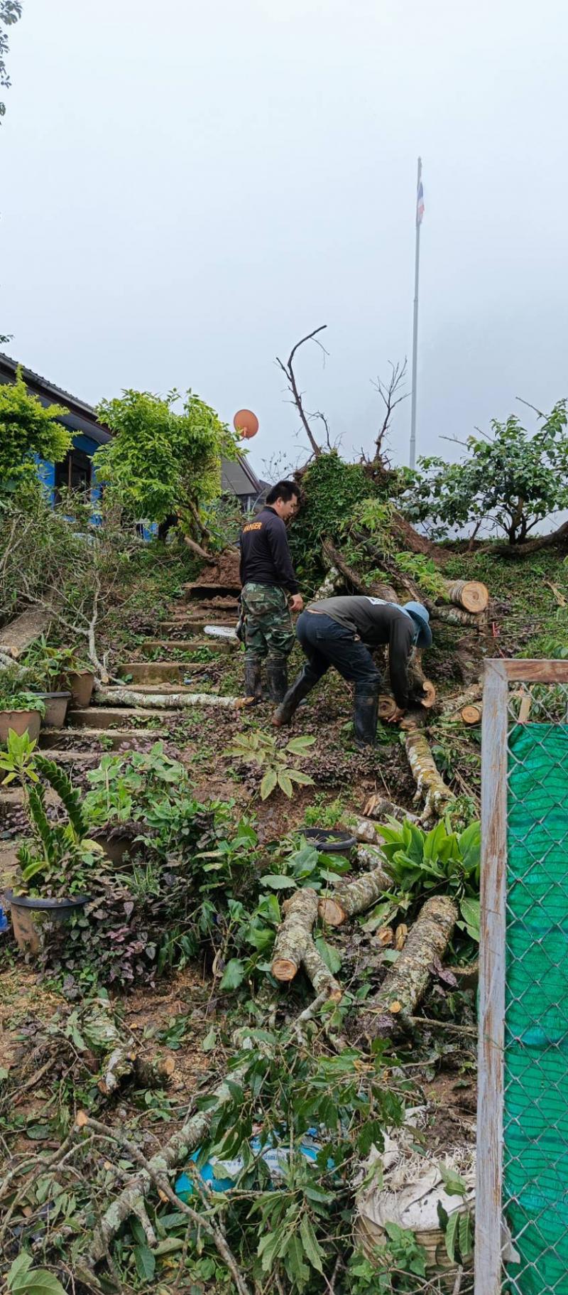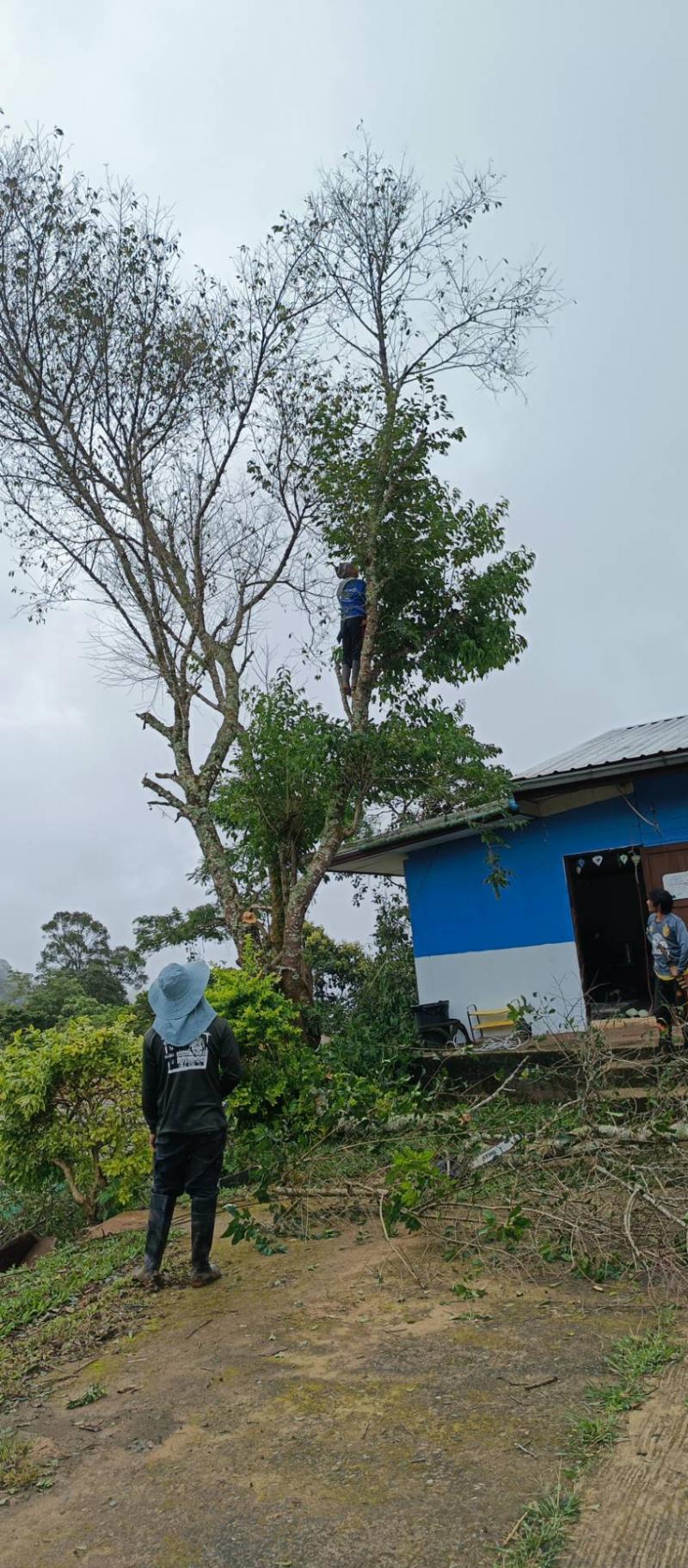 เจ้าหน้าที่ศูนย์ประสานงานบ้านทับเบิก ได้ออกให้บริการประชาชนในพื้นที่ โดย ดำเนินการตัดและเคลื่อนย้ายต้นไม้ที่ล้มบริเวณข้างศูนย์พัฒนาเด็กเล็ก (ศพด.) บ้านทับเบิก