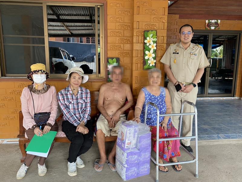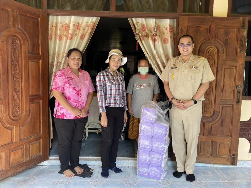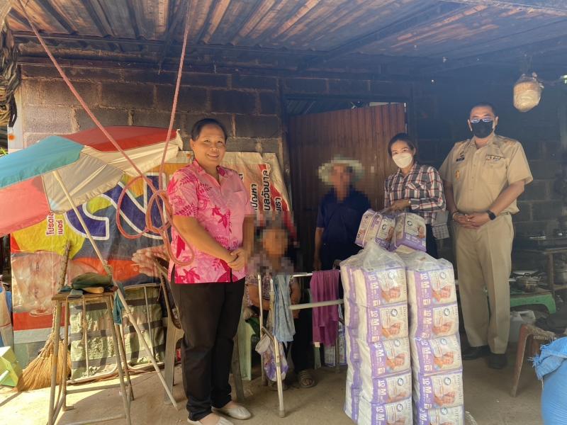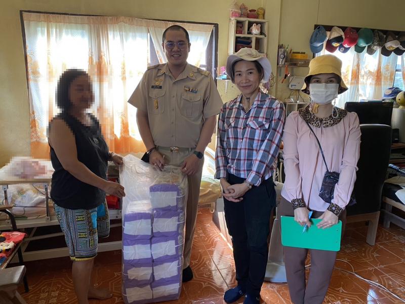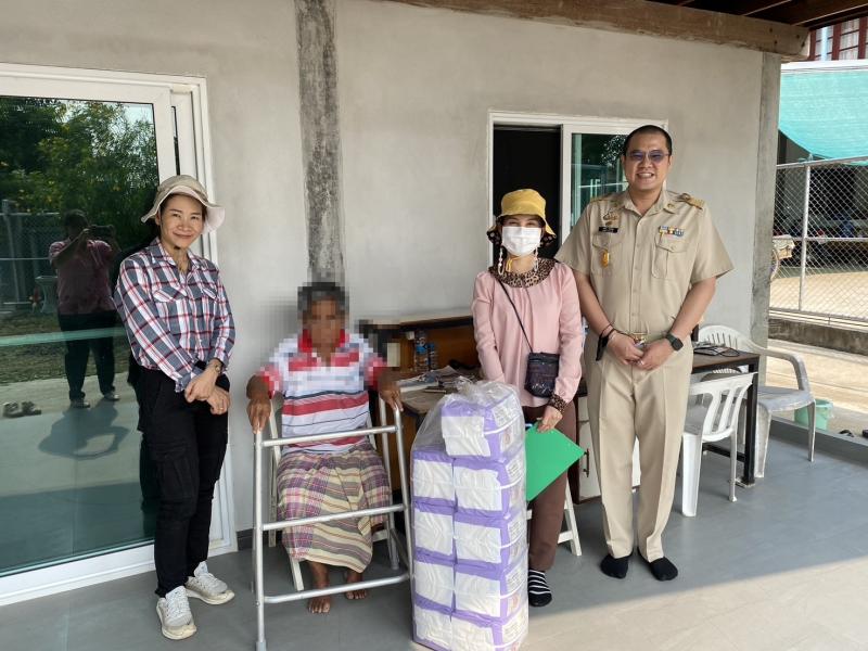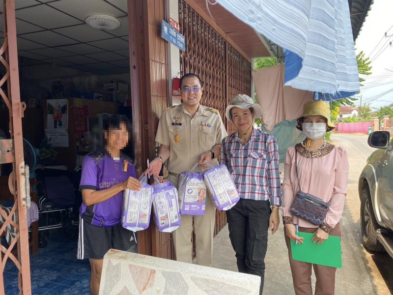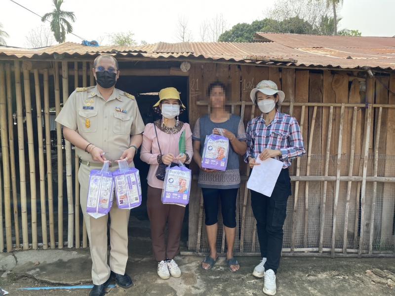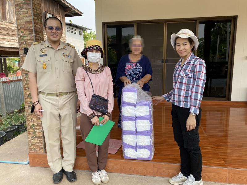 ลงพื้นที่เยี่ยมบ้าน มอบผ้าอ้อม แผ่นรองซับ และแผ่นเสริม ของศูนย์พัฒนาคุณภาพชีวิตและส่งเสริมอาชีพผู้สูงอายุตำบลวังบาล แก่ผู้สูงอายุ ผู้พิการ และผู้ด้อยโอกาส