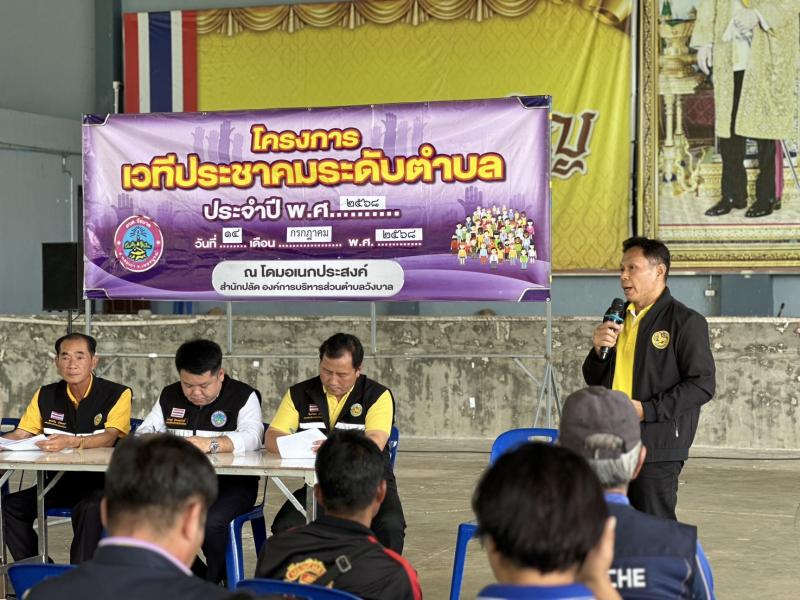 รายละเอียด : วันที่ 14 กรกฎาคม พ.ศ. 2568 นายสุขเสริญ บัวอินทร์ นายกองค์การบริหารส่วนตำบลวังบาล พร้อมด้วยนายธรรมบุตร มัททวะสุรเกียรติ์ รองนายกองค์การบริหารส่วนตำบลวังบาล นายจีระวัฒน์ แซ่เถา รองนายกองค์การบริหารส่วนตำบลวังบาล นายวิวัติ เถารักตระกุล เลขานุการนายกองค์การบริหารส่วนตำบลวังบาล นายษัษฐี ม่วงศรีจันทร์ รองปลัดองค์การบริหารส่วนตำบล รักษาราชการแทน ปลัดองค์การบริหารส่วนตำบลวังบาล นางสาวสุริยาภรณ์ เทพธานี นักวิเคราะห์นโยบายและแผนชำนาญการพิเศษ และพนักงานองค์การบริหารส่วนตำบลวังบาล ร่วมจัดทำโครงการเวทีประชาคมระดับตำบล ตามที่ อบต.วังบาล จะดำเนินการจัดทำแผนพัฒนาท้องถิ่น (พ.ศ.2566 - 2570) เพิ่มเติม ครั้งที่ 3/2568 เพื่อให้คณะกรรมการพัฒนาท้องถิ่นและประชาคมท้องถิ่น พิจารณาร่างแผนพัฒนาท้องถิ่นที่เพิ่มเติม เพื่อใช้เป็นแนวทางในการจัดทำงบประมาณของ อบต.วังบาลต่อไป ณ อาคารอเนกประสงค์ (โดม) อบต.วังบาล โดยมีกำนันตำบลวังบาล ผู้นำชุมชน สมาชิกสภาอบต.วังบาล หัวหน้าส่วนราชการ หน่วยงานราชการในระดับตำบล เจ้าหน้าที่หน่วยงานราชการที่รับผิดชอบในเขตพื้นที่ตำบลวังบาล และประชาชน เข้าร่วมโครงการเวทีประชาคมระดับตำบลในครั้งนี้ด้วย