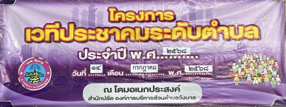 โครงการเวทีประชาคมระดับตำบล เพื่อพิจารณาร่างแผนพัฒนาท้องถิ่น (พ.ศ.2566 - 2570) เพิ่มเติม ครั้งที่ 3/2568 ณ โดมอเนกประสงค์ อบต.วังบาล