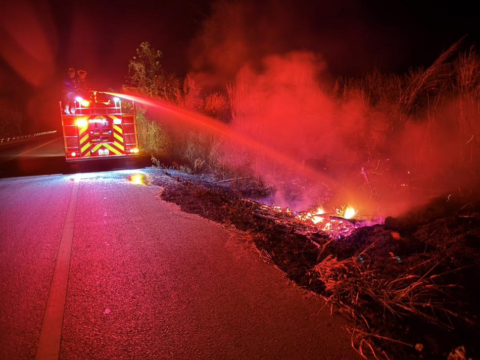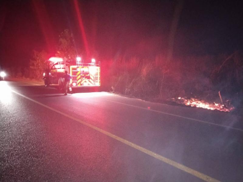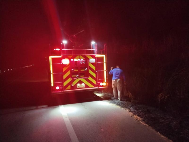 อบต.วังบาล ลงพื้นที่ระงับเหตุไฟไหม้พุ่มไม้ข้างถนนรอยต่อหมู่ที่ 12-13
