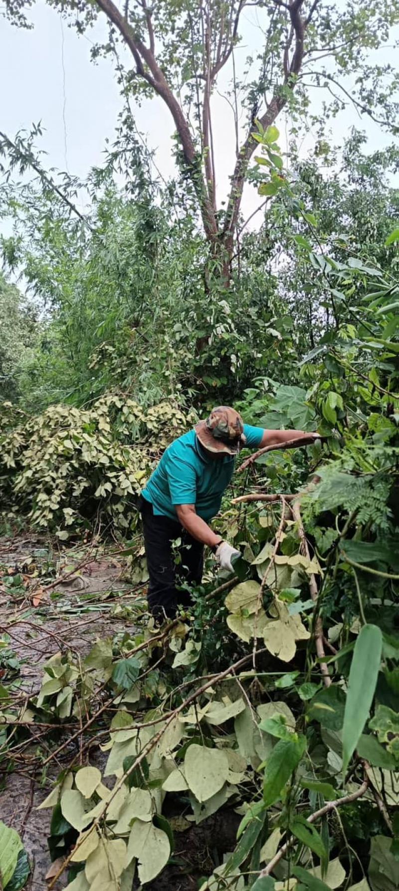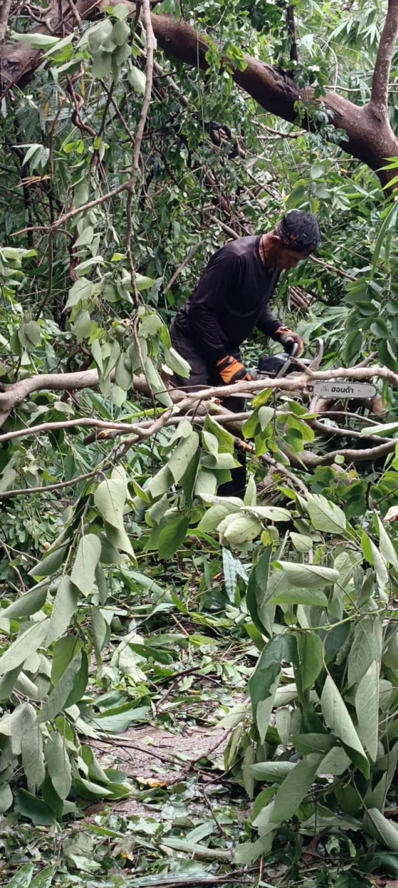 ให้บริการสาธารณะ ดำเนินการตัดต้นไม้ และเก็บกิ่งไม้ที่ล้มขวางเส้นทาง