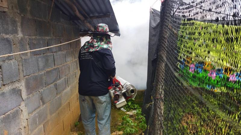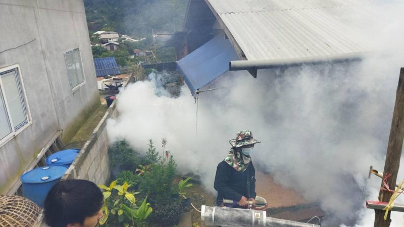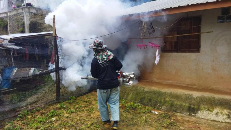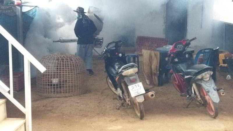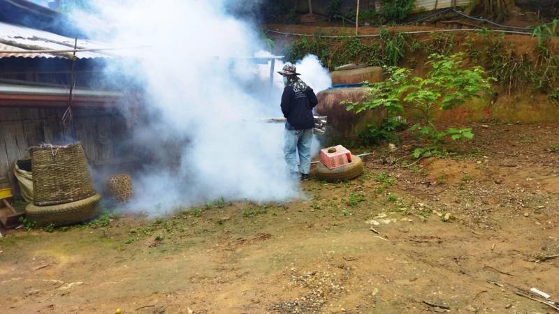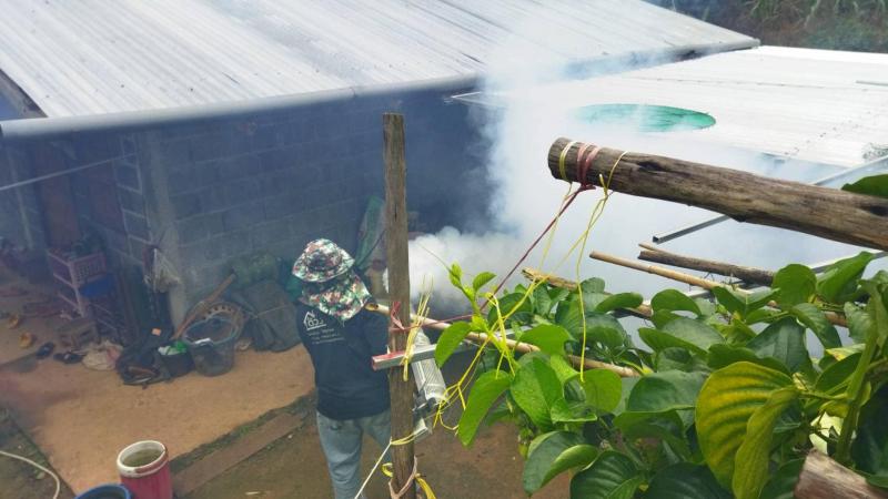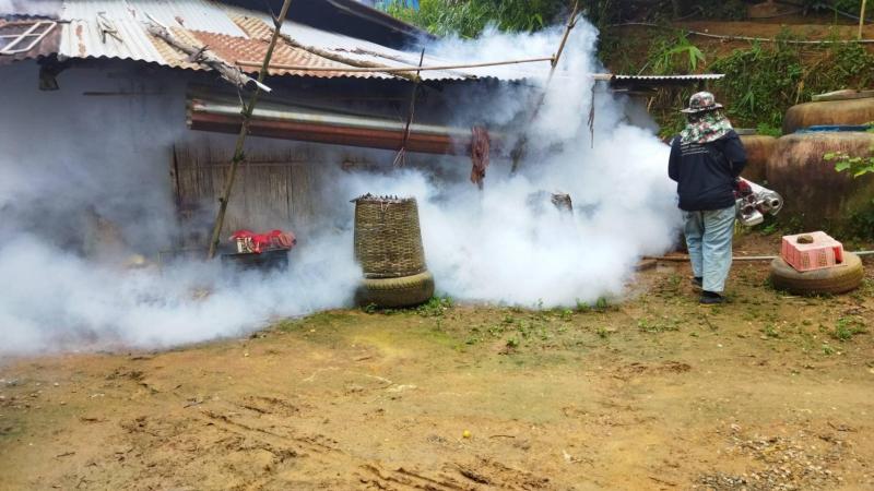 ดำเนินการพ่นหมอกควันกำจัดยุงลาย สนับสนุนให้กับเคสผู้ป่วยในพื้นที่หมู่ 14 บ้านทับเบิก