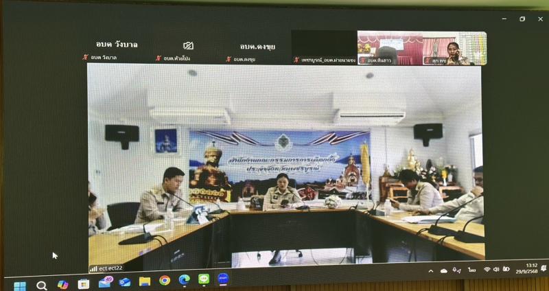 รายละเอียด : วันที่ 29 กันยายน 2568 ว่าที่ร้อยตรีปรเมศวร์ ราชพรหมมินทร์ ปลัดองค์การบริหารส่วนตำบลวังบาล ,นางราตรี ราชพรหมมินทร์ผู้อำนวยการกองสวัสดิการสังคม รักษาราชการแทนหัวหน้าสำนักปลัด ,นางสาวสุริยาภรณ์ เทพธานี นักวิเคราะห์นโยบายและแผนชำนาญการพิเศษ,นางคนึงนิจ สายคำมี เจ้าพนักงานธุรการชำนาญงาน ได้เข้าร่วมประชุมเตรียมความพร้อมในการเลือกตั้งสมาชิกสภาองค์กรบริหารส่วนตำบลและนายกองค์การบริหารส่วนตำบล(กรณีครบวาระ) ผ่านการประชุมทางไกลระบบ Zoom Cloud Meeting ณ ห้องประชุมองค์การบริหารส่วนตำบลวังบาล