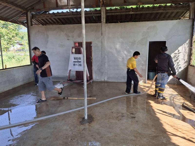 ออกให้บริการสาธารณะ เรื่องน้ำอุปโภค/บริโภค บรรทุกน้ำเพื่อสำรองน้ำให้ชาวบ้าน ในพื้นที่หมู่ที่ 9 และดำเนินการล้างทำความสะอาดศาลาประชาคมหมู่ที่ 6