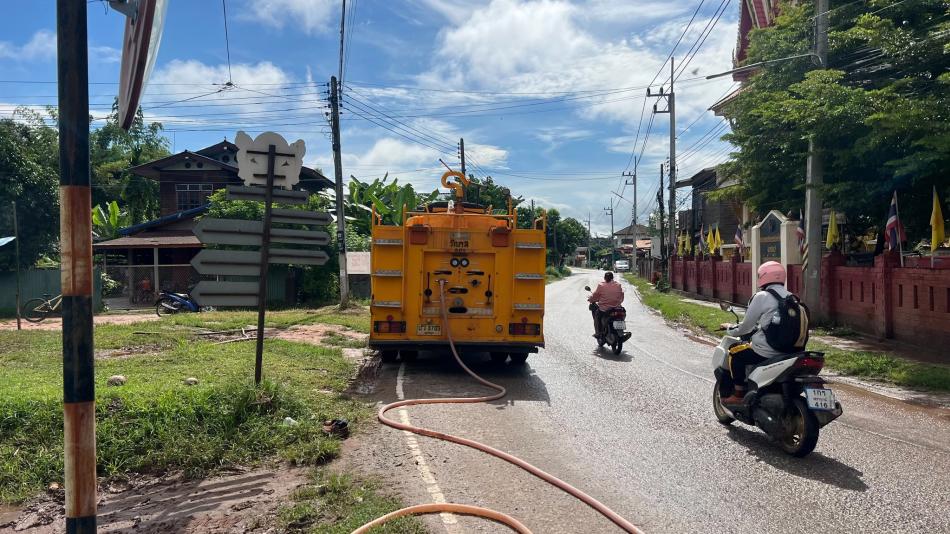 อบต.วังบาล ลงพื้นที่สำรวจระดับน้ำและล้างทำความสะอาดถนน หลังน้ำป่าไหลหลาก [31 สิงหาคม 2568]