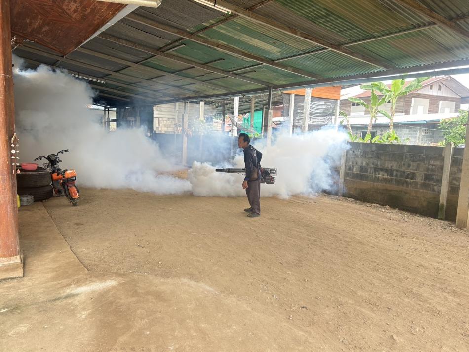 ลงพื้นที่ดำเนินการพ่นหมอกควันกำจัดยุงลายในผู้ป่วยรายใหม่ หมู่ที่ 12 [1 กรกฎาคม 2568]